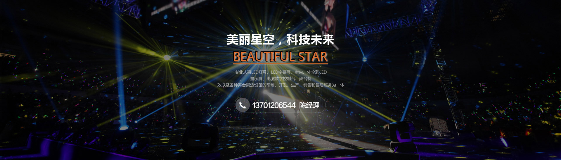 北京美丽星空科技有限公司是一家专业从事舞台灯光设备、体育场(馆)照明设备的销售、设计、调试及工程安装的专业技术服务公司。我司代理并销售数量众多品类齐全的各品牌舞台电脑灯具、音响器材的同时,还可为不同需求的客户提供租售服务。